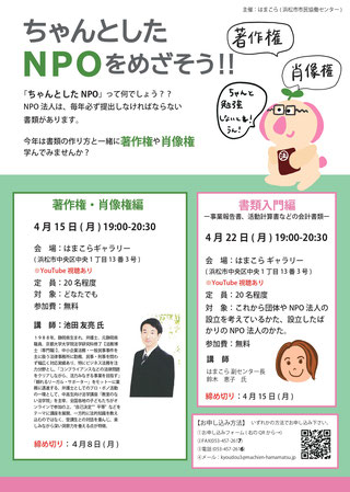 対 象:これから団体やNPO法人の設立を考えている方、設立したば