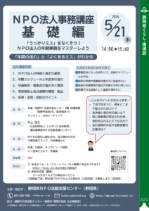 NPO法人の運営に必要な事務手続きについて、年間の流れに沿って分かりやすく解説する基礎講座です。